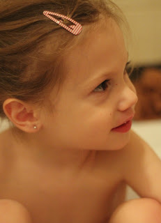 Lassan én is megbarátkozom a csillogással a fülében... ez most sokkal nehezebben ment, mint Hannánál. És egyelőre bele sem gondolok, hogy egyszer majd Lelle is előáll a kéréssel.